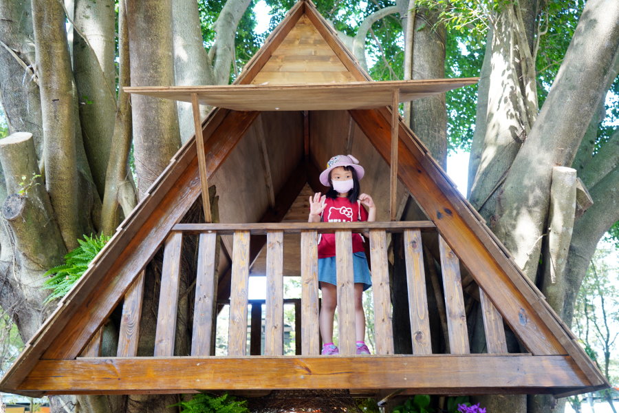 ▼除了可愛的波波草之外,園區旁還有設置樹屋讓小朋友可以爬上去探險,大人也可以來張網美照!