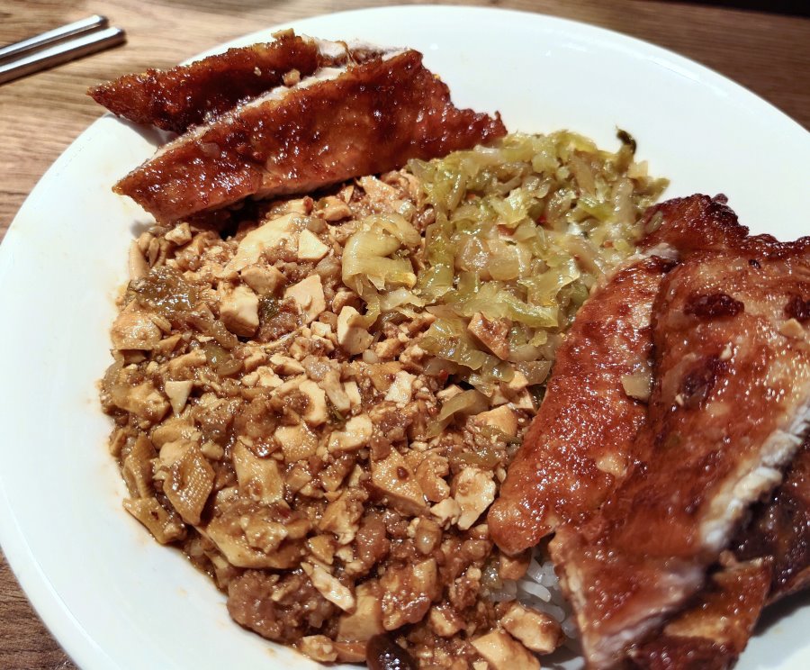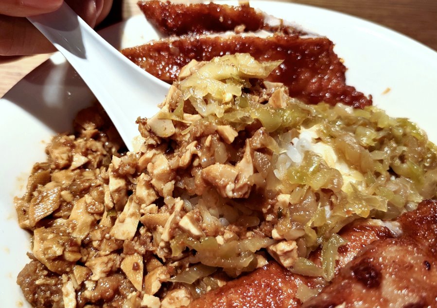 ▼白飯上頭搭配的是祖傳酸菜、鮮製豬油炸醬,喜歡配料多一點的朋友可以像我們一樣,點餐時先詢問服務人員是否可以加量,通常都是可以免費加料的~酸菜跟炸醬其實不算很重口味,但味道偏甜,我們還滿喜歡的!