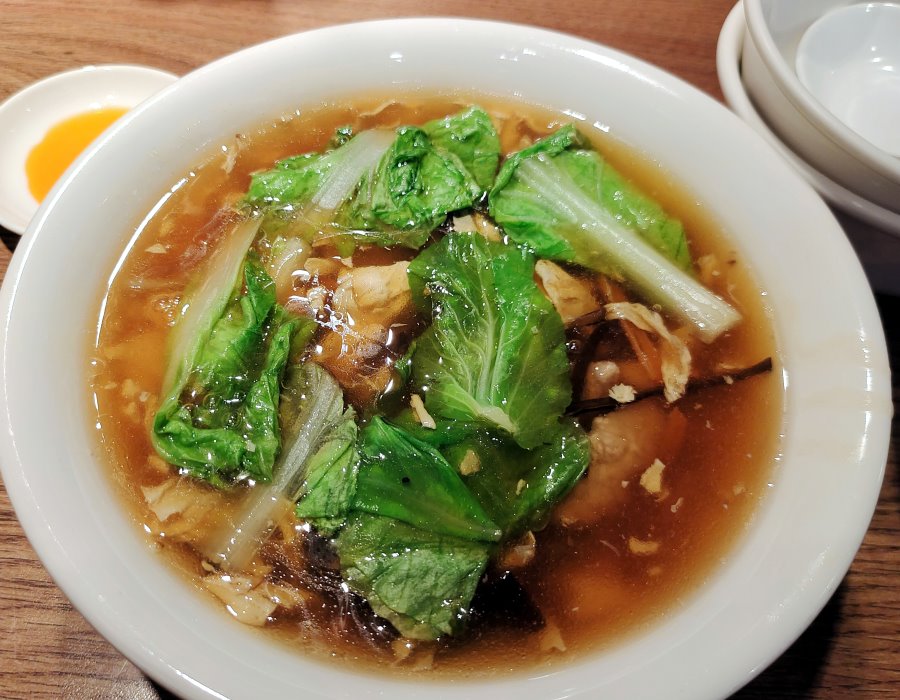 ▼裡頭的豬肉塊軟嫩香滑,不太需要費力咀嚼就能享用,算是亮點之一;湯頭帶點微微甘甜,搭配醬油、香油香氣頗足,但喝起來不太像記憶中大滷湯的味道,加了黑醋之後反而比較好一些,我們是覺得這道還好,但也有不少朋友滿喜歡的!