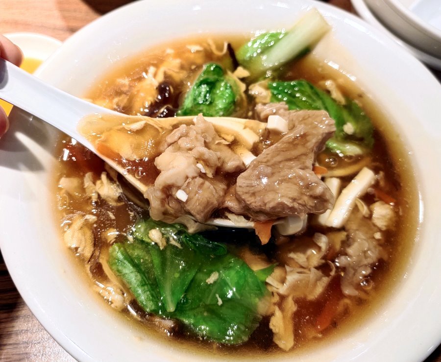 ▼大滷湯,有小白菜、黑木耳、蛋花、紅蘿蔔絲、豆腐、豬肉塊等配料,算是料多實在!