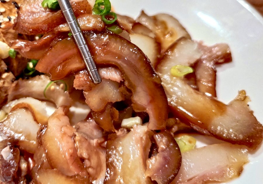 ▼豬頭皮,帶有微微煙燻香氣,軟Q的質地帶點膠質口感,搭配醬料就很提味好吃,我們都很愛這道~大推!