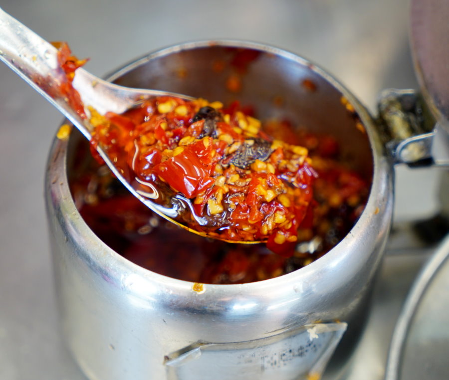 ▼自製辣椒香氣十足,嗜辣的朋友一定要試試~也有不少朋友會加在滷肉飯上頭享用!