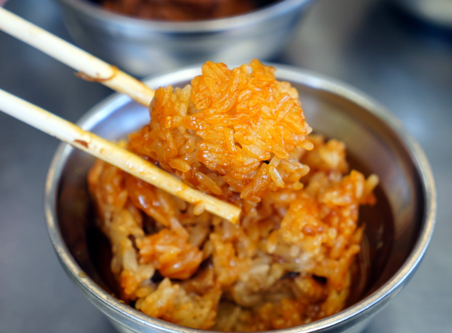 ▼滷肉飯,手切肉塊搭配甘醇滷汁,整個肥而不膩,幾乎是入口即化的口感,唇齒之間還能感受到黏口的膠質感,搭配香Q米飯著實銷魂啊~~老饕來的話還會點一碗隱藏版的雞滷飯,也就是滷肉飯+雞絲,搭配起來也很厲害,可惜當天我們的胃袋不爭氣,最終還是無福享用到(笑)!