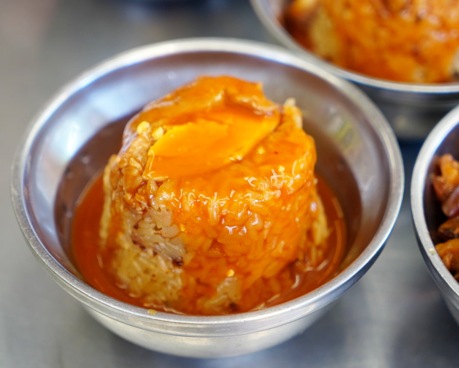 ▼筒仔米糕裡頭還有滷蛋、香菇、豬肉、蝦米等配料,米糕吃起來粒粒分明又帶點黏Q口感,不會糊化在一起~