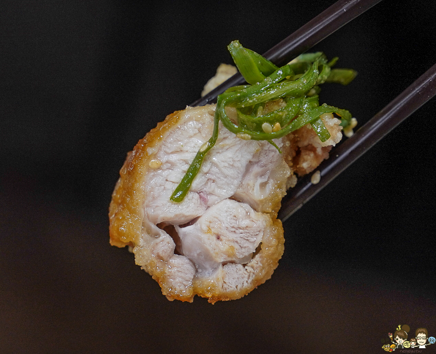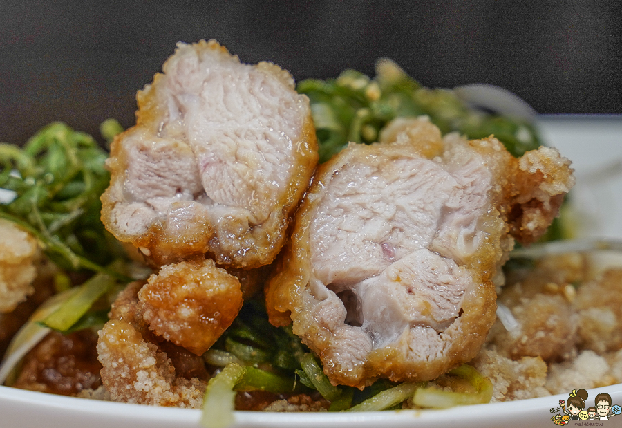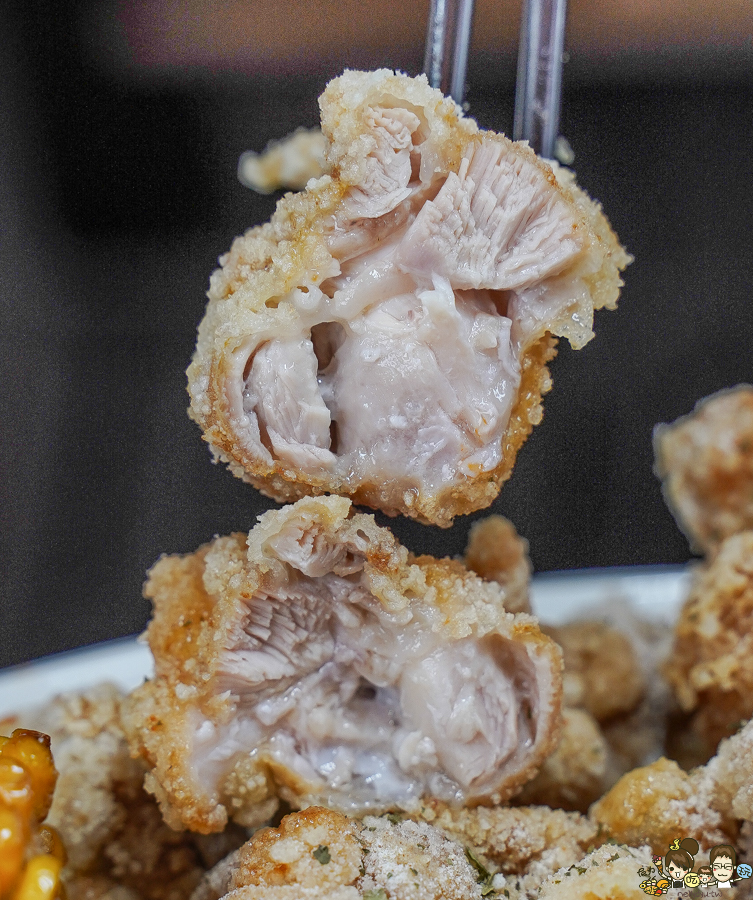 使用雞腿肉製作,油炸過讓表面帶顆粒酥脆與軟Q肉質