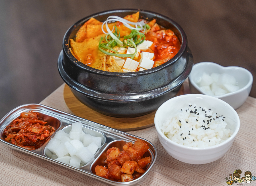 秋冬新推出的韓式鍋類,份量滿滿還有搭配三樣韓式釀製小菜、一碗白飯