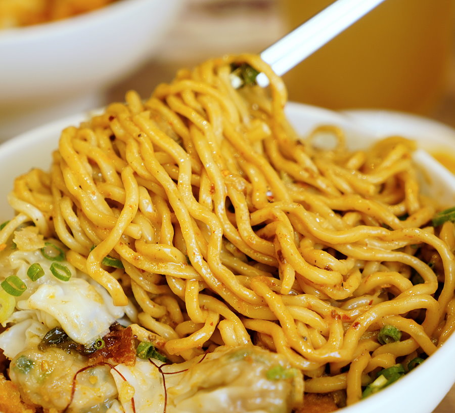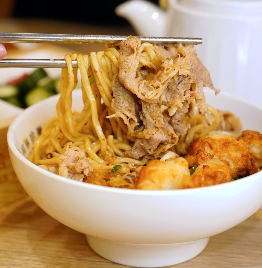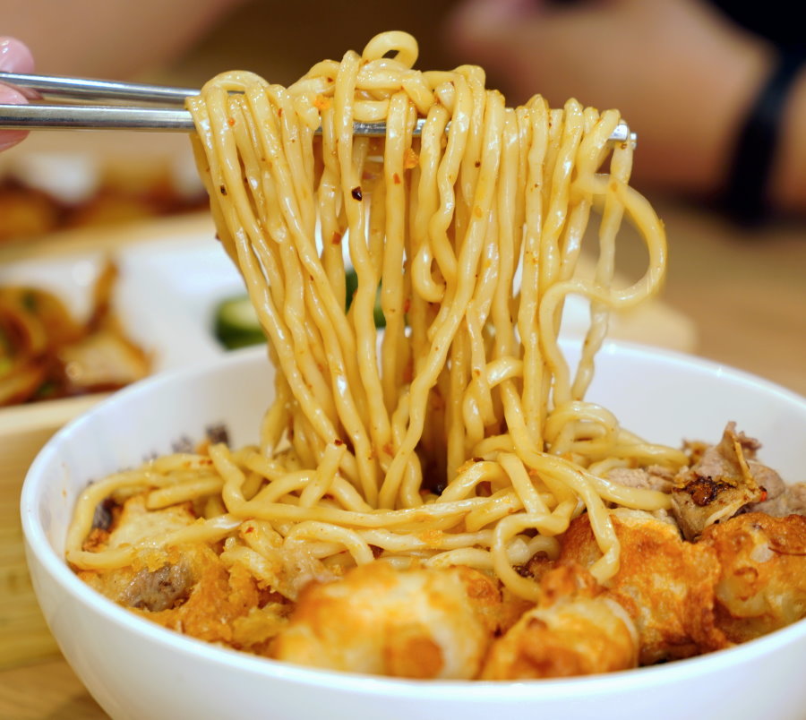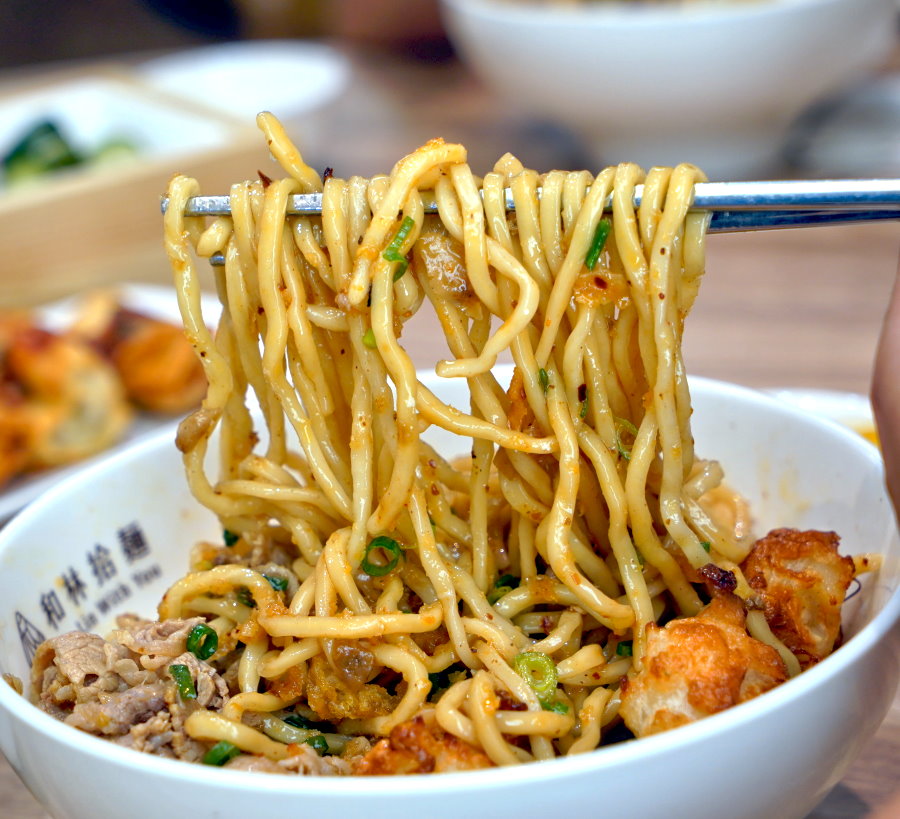 ▼麵條也是不容小覷,採用嚴選澳洲黃金小麥製成麵粉,經由真空攪拌混合讓麵條更有Q度與彈性,再經由20道輾壓手續壓成麵皮,並切成2.0mm的黃金比例,是經由反覆測試所得到的最佳口感,不僅麵條吃起來香Q有勁道,還能緊緊巴附醬料的精華,吃起來每一口都是滿滿醬香,就算冷掉了還是非常Q彈,所以不用擔心外帶回家享用麵條會容易軟爛,還是一樣好吃唷!