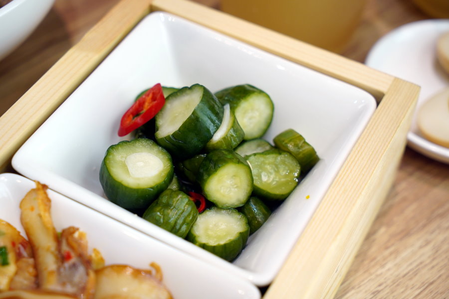 ▼小菜可以單點也可以任選三樣只要168元,而且還會用專屬的木盒盛裝,更划算也很有儀式感!我們點的是涼拌柚香蘿蔔、涼拌煙燻耳絲、醋溜小黃瓜,看起來好像不多但其實小菜碟很深,份量也是很實在~