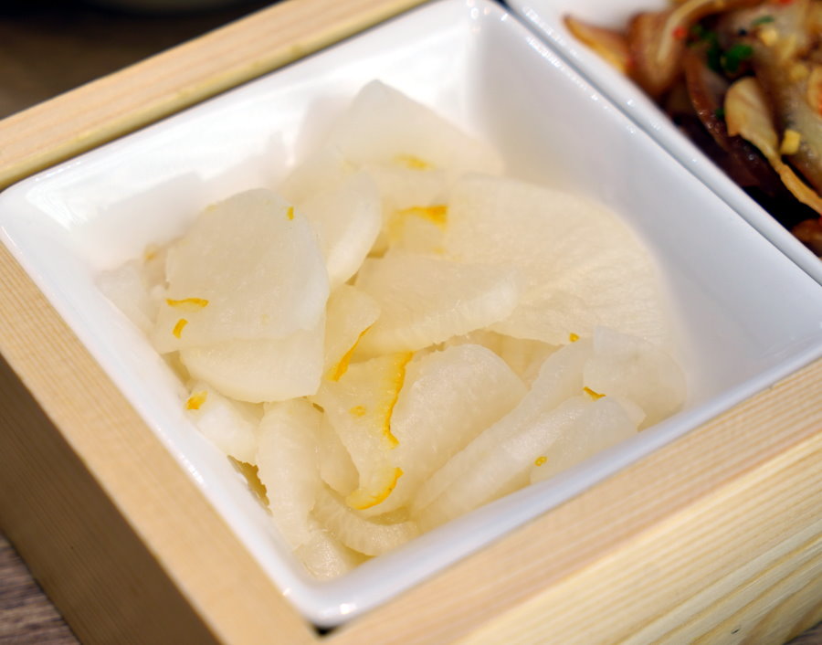 ▼涼拌柚香蘿蔔,帶有柚子果香與蘿蔔的清甜爽脆,搭配在一起清爽又解膩!