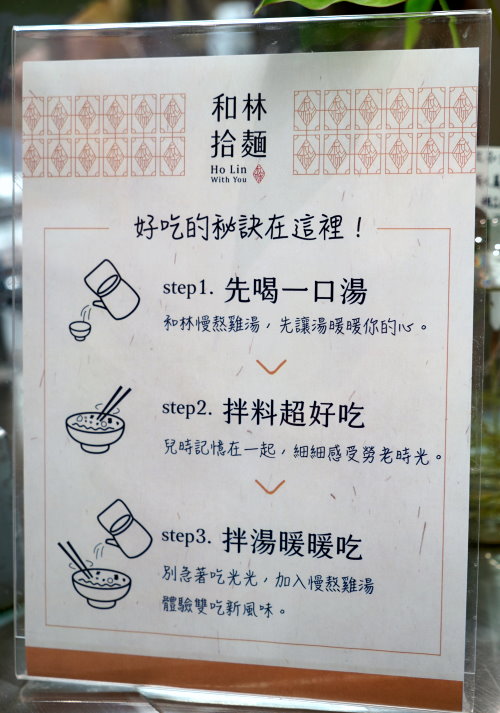 來一趟「和林拾麵」,可以感受到每一個細節的用心,從品牌、裝潢、麵體、吃法都很講究,雖然價位略高一些,但用餐環境、份量、口味特色都很值得,很適合跟親朋好友或是另一半一起來享用暖心的拌麵,吃起來包準飽足又滿足,而且還會讓人有種意猶未盡的感覺~有興趣的朋友不妨可以來品嘗一下!