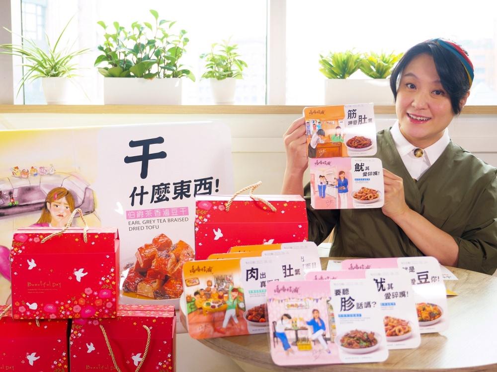 悶嚕嚕系列的包裝在視覺上也格外療癒,皆由海裕芬親筆繪製對於愛情、職場與友情間的三種詼諧情境抒發:「就是愛豆你」茄汁塔香豆腸雲耳,幽默呈現愛情中暫時需要 Me Time 時刻;「魷其愛碎嘴」柴魚香辣滷魷魚,描繪出辦公文化有苦難言的愁悶;「要聽胗話嗎」塔香黑胡椒雞胗,只有好閨蜜才能說出的一針見血真心叮嚀。除了三款「悶嚕嚕」系列帶給粉絲們驚喜,其它還有像是笑嚕嚕系列「真是愛計較」「杏我就大發」「肉出真面目」「筋呷賣麥肚氣」;以及氣嚕嚕系列「干什麼東西」「豬椒你聽話」「酒雞 Buy 啦」一共十款在官網上同慶狂歡。