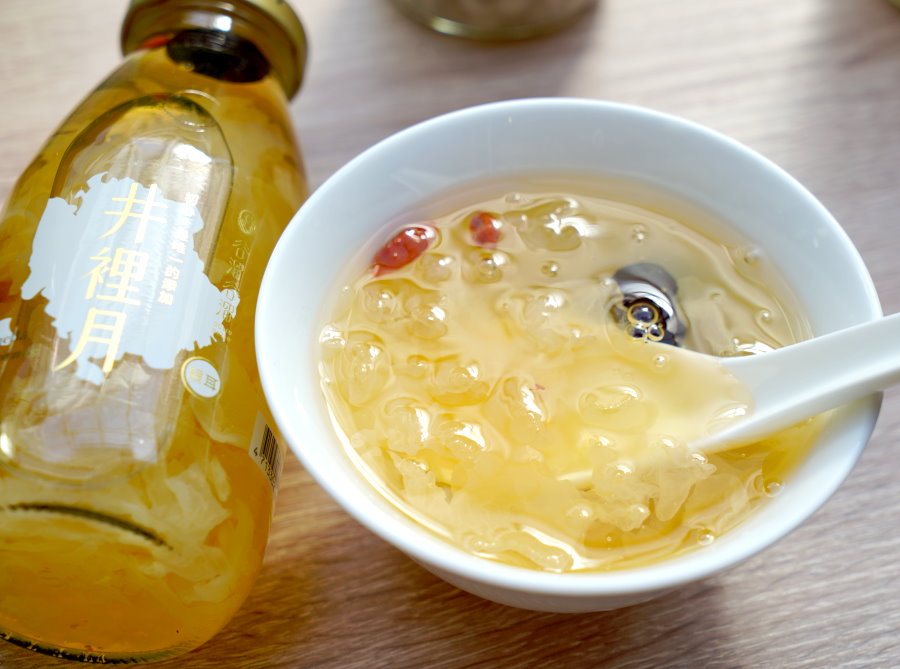 ▼他們家採用來自阿里山的有機新鮮銀耳,沒有泡水、無漂白,更沒有硫化物乾燥劑、農藥殘留等疑慮,以人工方式切塊處理,跟市面上有些用機器打碎的口感完全不同,更能品嘗到整朵銀耳的Q彈;再搭配人工投入整顆紅棗、枸杞等食材連瓶一起烹煮,沒有使用防腐劑、人工添加物、增稠劑等,以新鮮紅棗取代紅棗萃取液,所以每瓶井裡月的色澤也會有所不同,真的很特別!