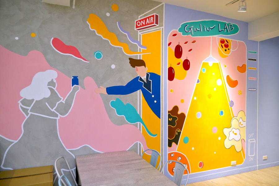 ▼牆面延伸一樓的手繪塗鴉風,希望大家不管是朋友、同事、家人、客戶,都可以透過谷溜谷溜來認識、交流,也能讓不少志同道合的朋友因體驗而有所連結,分享更多美好的事物!