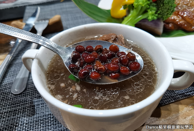 樹小編今天來吃原住民特色餐點,刺蔥雞腿、紅藜飯、時令蔬菜等等,我覺得最特別的是樹豆排骨湯,樹豆看起來像珍珠,咬起來軟綿湯頭鮮甜