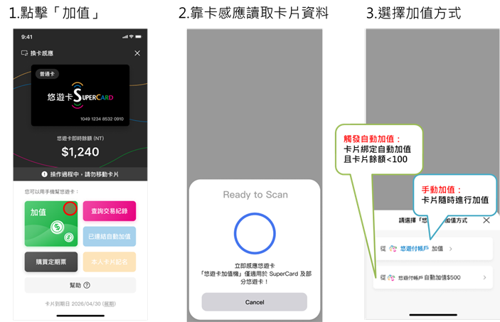 簡單看完了以後,不要懷疑,你沒有看錯,這張「SuperCard 超級悠遊卡」就是一個讓你從手機加值錢進去以後,可以拿去搭交通運輸的媒介。
