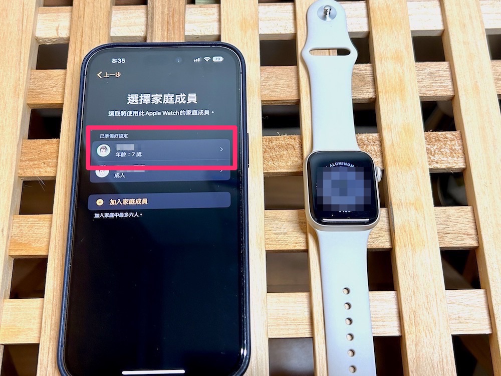 當 Apple Watch 開機進行配對時,有一個步驟就是會先問你這支 Apple Watch 是你要用的還是給家庭成員使用,這時候我們就能夠選擇要給家庭成員群組中的哪一位成員使用,選擇好對象便能跟著進行步驟完成設定的動作 。