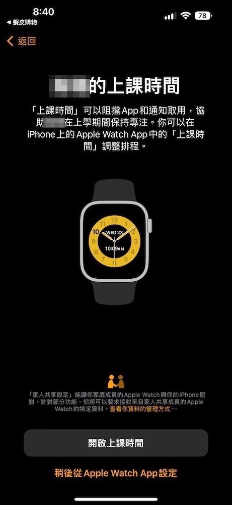 如果這時還在「上課時間」排程中,手錶會自動繼續「上課時間」模式。