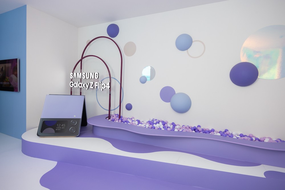 台灣三星「如果從此展開」體驗展,以新品中最受歡迎的「精靈紫」作為主色調,將粉嫩可人的淡紫色,融入展覽中的大小元素,唯美浪漫信手拈來,紫色控絕對要拍好拍滿!展覽共包含五大主題:「翻轉顛倒屋」、「Z分子打卡牆」、「斜槓工作室」、「輕巧氣泡池」及「全星元宇宙」,除了能拍出一系列美照,更能在此體驗三星 Z 系列的多元應用,感受摺疊機為生活展開的無限可能。