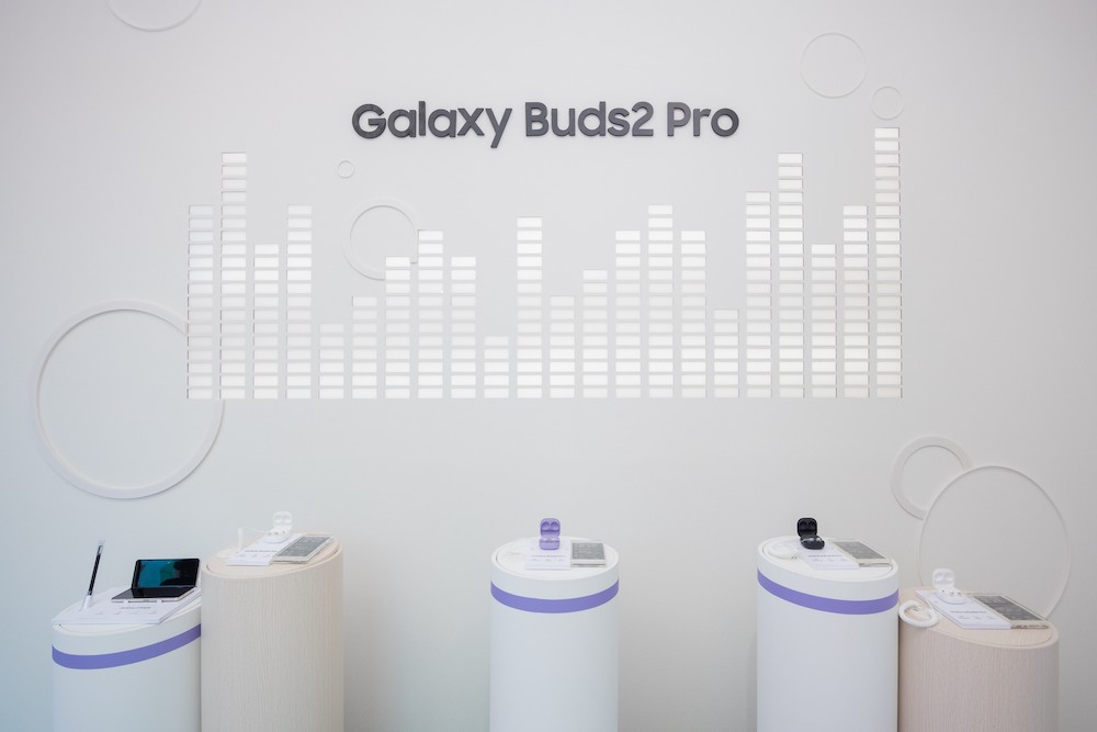 Galaxy Watch5 系列、真無線藍牙耳機 Galaxy Buds2 Pro 隨 Z Fold4、Z Flip4 同步耀眼登場。踏上飛輪,讓 Galaxy Watch5 擔任運動時的最佳教練,紀錄健身成效;Galaxy Buds2 Pro 則是時尚與強悍兼具的耳中小心機,在此可親身體驗 360 度環繞音訊、24bit SSC Hi-Fi 保真音效的高品質盛宴。