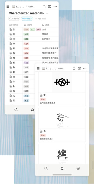 繁體字,擁有全世界字體筆畫最多、困難度最高的稱號,也讓屢屢拿下國際設計相關大獎的字型設計師何庭安,在創作過程中有更多展露鋒芒的空間。他從街上廣告、文宣汲取靈感,將碎片放在「Miro」App 中,用「心智圖」功能剖析每種可能,他也搭配「Notion」筆記 App,大力推薦「分鏡圖」功能,脈絡清晰而且 GIF 檔能在每一格中分別跑動顯示。面對簡語、表情符號的流行,他依然相信繁體字因繁複而美麗、因複雜更耐人尋味。
