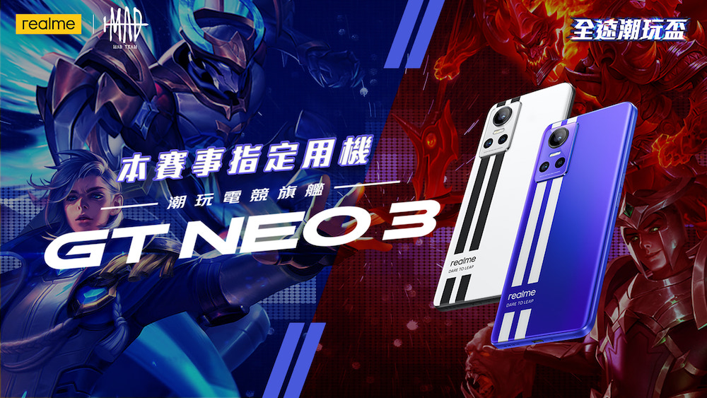 行,並全程贊助廣受市場青睞的 realme GT Neo3 作為賽事用機,為期兩天的賽事將於 10 月 21 日 19:00 與 10 月 22 日 18:00 準時開打,準時收看直播,還有機會帶走 realme GT Neo3!