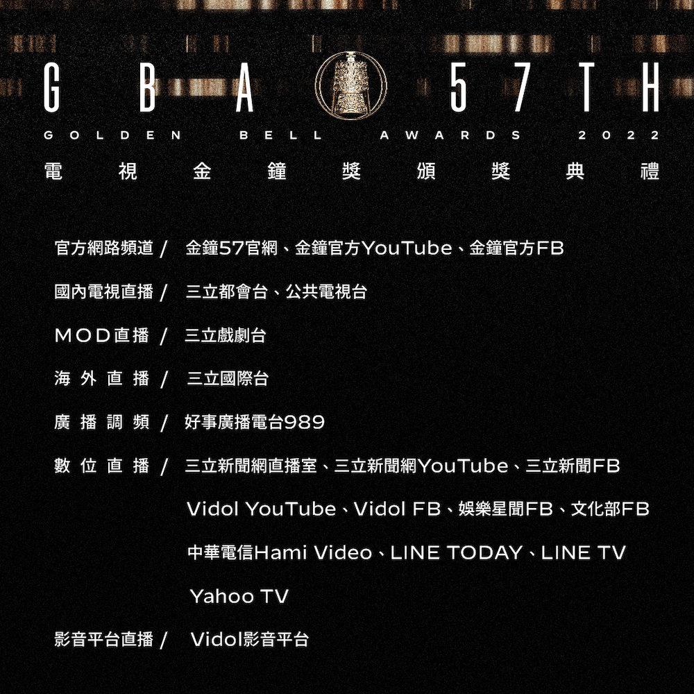 - 官方網路頻道:金鐘57 官網、金鐘官方 YouTube、金鐘官方 FB