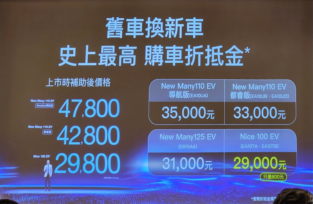 光陽 Ionex 持續建置 Ionex 3.0 換電站,今年預計超過 2000 站目標預計將達成,對於最支持光陽電動機車的 Ionex 2.0 車主也沒忘記,推出 Ionex 2.0 兩種升級方案。其一為舊換新,對於 New Many110 EV、New Many125 EV 與 Nice 100 EV 祭出換購 Ionex 3.0 車種優惠折抵。New Many110 EV 導航版折 35000 元、New Many110 EV 都會版折 33000 元、New Many125 EV 折 31000 元,其中 Nice 100 EV 折 29000 元,只比上市時補助後 29800 價格差 800 元,等同這幾年只用 800 元購買這台車。