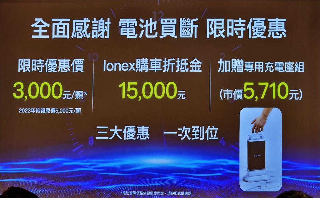 另一方案為買斷電池,光陽還會加贈專用充電座,讓 Ionex 2.0 車主可繼續方便的使用。另外隨著轉換方案的推出,Ionex 2.0 將會逐步退場,預計 2023 年底轉換完成。