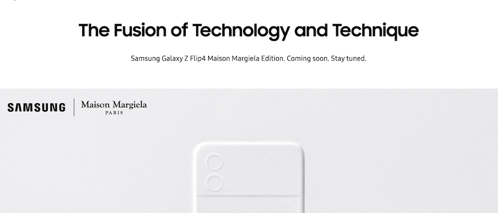 Samsung 折疊旗艦 Galaxy Z 系列推出後廣受消費者喜愛,雖說這次 Galaxy Z 系列並沒有帶來 Thom Browne Edition 限量版,不過卻透露將會與法國巴黎頂級時裝品牌 Maison Margiela 合作,帶來 Galaxy Z Flip4 特別版。而剛剛三星也在部分國家官網正式釋出合作款的預告圖!