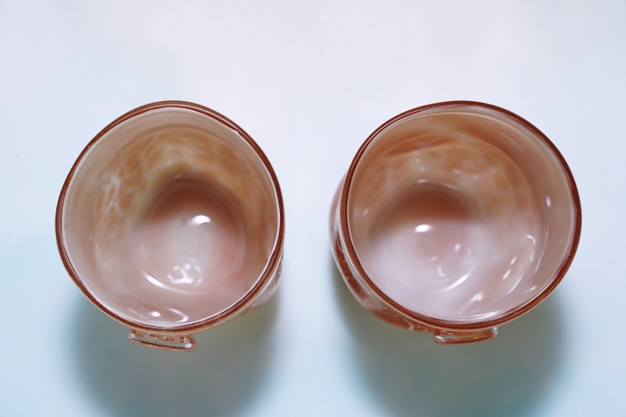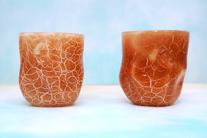 九曲杯的命名是來自鹿港「九曲巷」,玳瑁棕的顏色與裂紋是九曲巷的磚牆。由於是手工吹製,大小、重量、紋路、顏色深淺都會有所差異,所以每款杯子都是師傅獨一無二的創作。