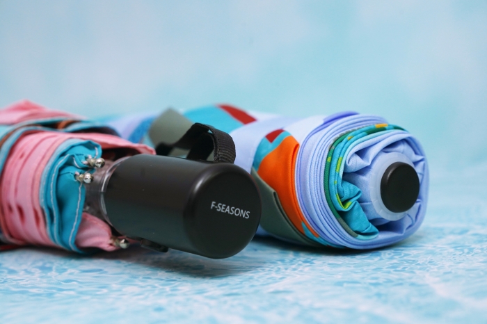 採用玻璃纖維傘骨,韌度高,不會被風一吹就斷。還特地加裝稜角中棒(照片中手握的上方)加強堅固性。開傘收傘都只要一隻手就搞定,在車上或下了公車都方便開傘收傘,另一隻手還能提東西。