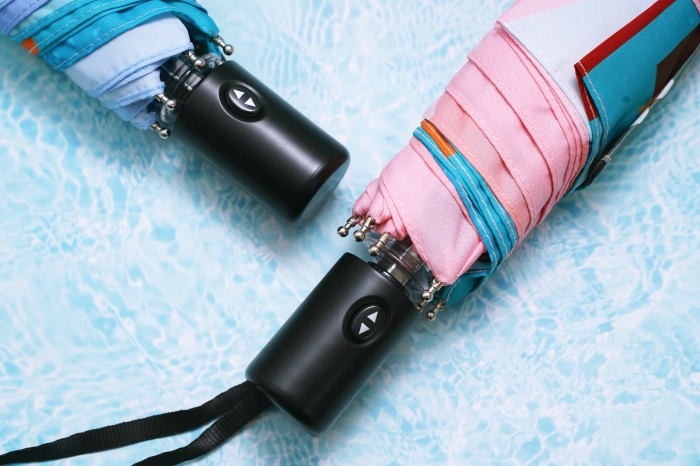 傘布來自台廠製造的潑水傘布,沾滿雨水的傘,稍微甩一甩就掉。能保持室內乾燥不濕滑既安全也不需費時清理。