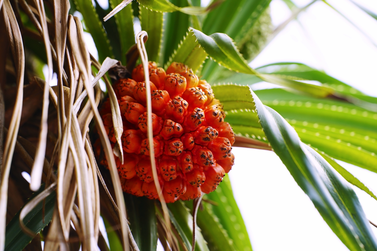 ▼官方所列舉的鼻頭角步道植物有近三十種,照片中這顆是「林投果」,別名「野菠蘿」,是常見的海濱植物,在民間傳說、生態景觀的貢獻、經濟價值上都受到津津樂道。