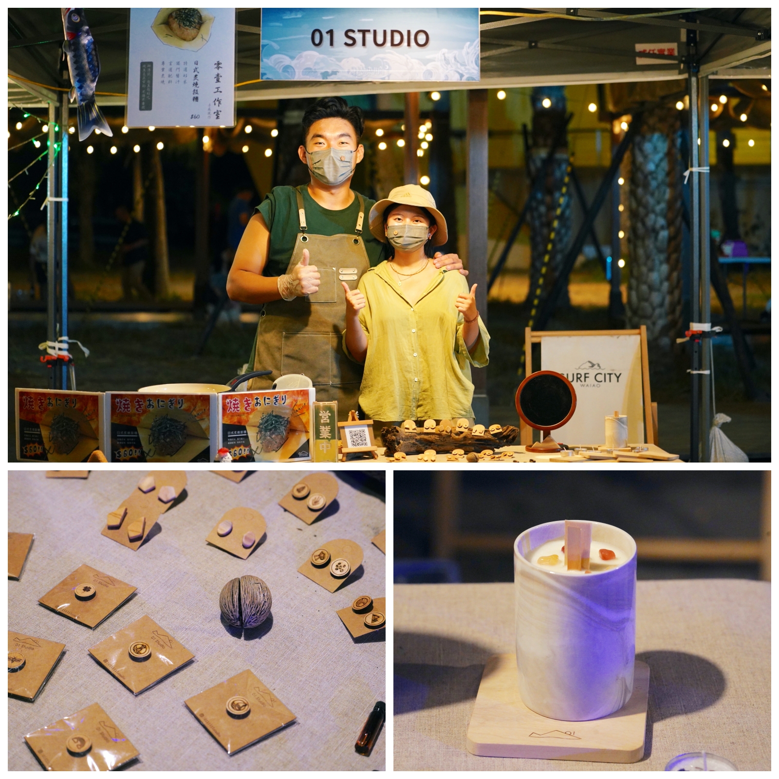 ▼01 sutdio 展售日式炙燒飯團、精油蠟燭、口罩香氛扣,很符合居家防疫的產品,雖然逐步解封了,但是多數人短期內仍無法脫離口罩,至少我會一直戴著。