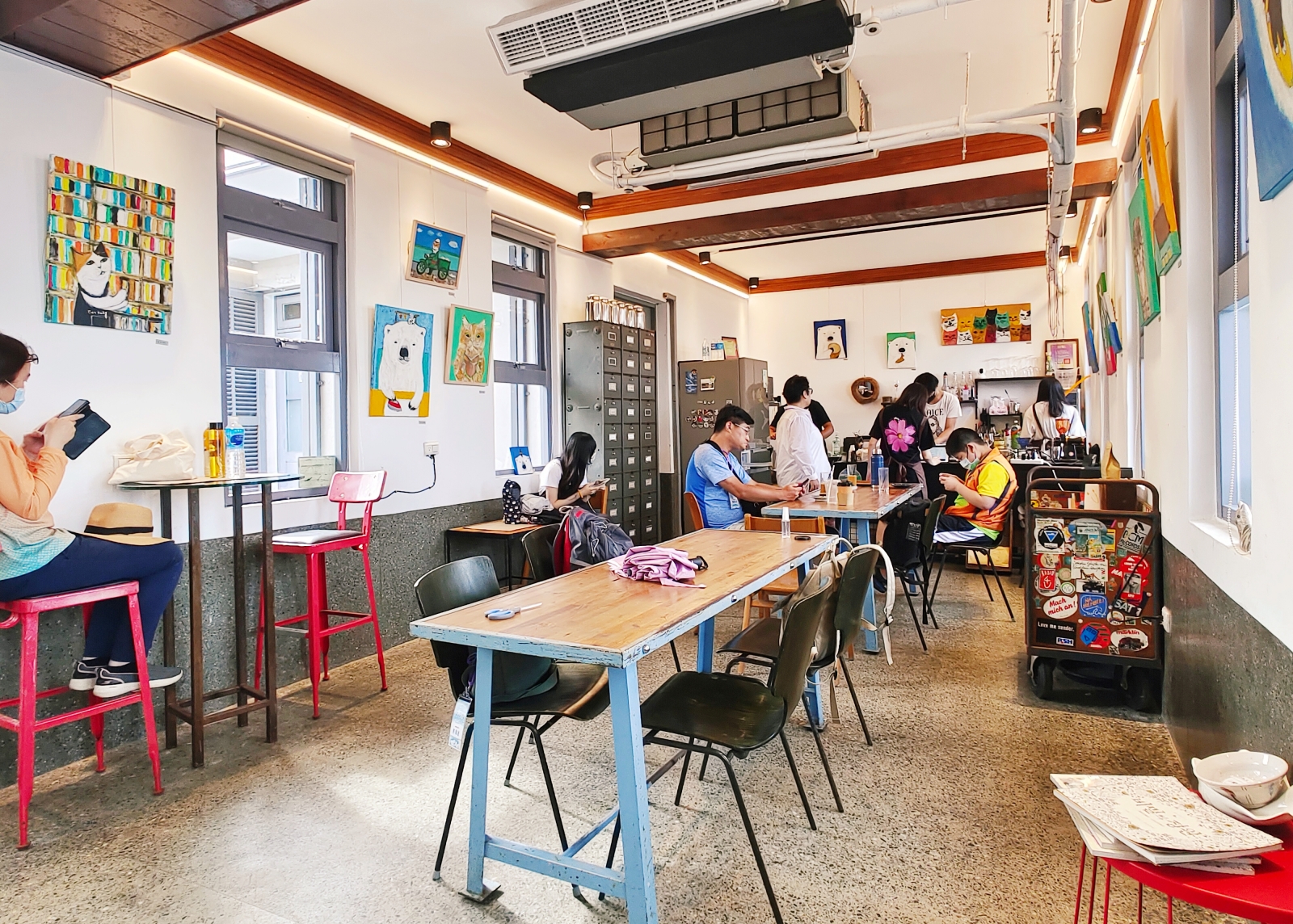 ▼店內牆面可窺見老建築痕跡,但是整理得很乾淨,餐點中最有名的是老闆的手沖咖啡、鮑魚滷肉飯,但是此行重點非用餐,是要準備去做彩繪浮球小夜燈體驗。