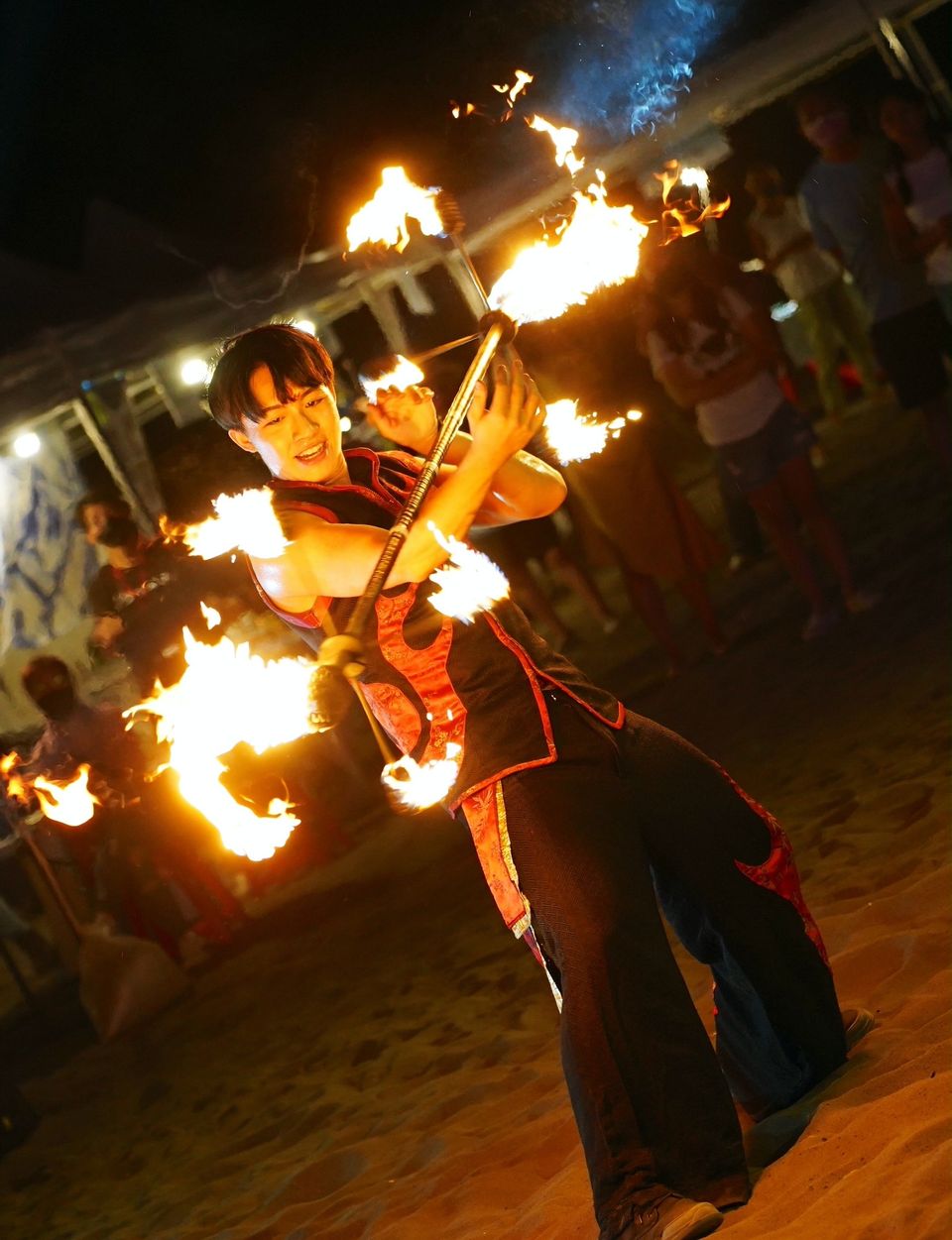 ▼即將成真火舞團火舞表演真的不容易,光是在現場拍照,感受熱氣襲來就有點吃不消了,舞者老師們還用火來表演!真的要向他們致上敬意。他們表演不只是炫技,也導入了表演藝術與美感在其中,選曲用心。