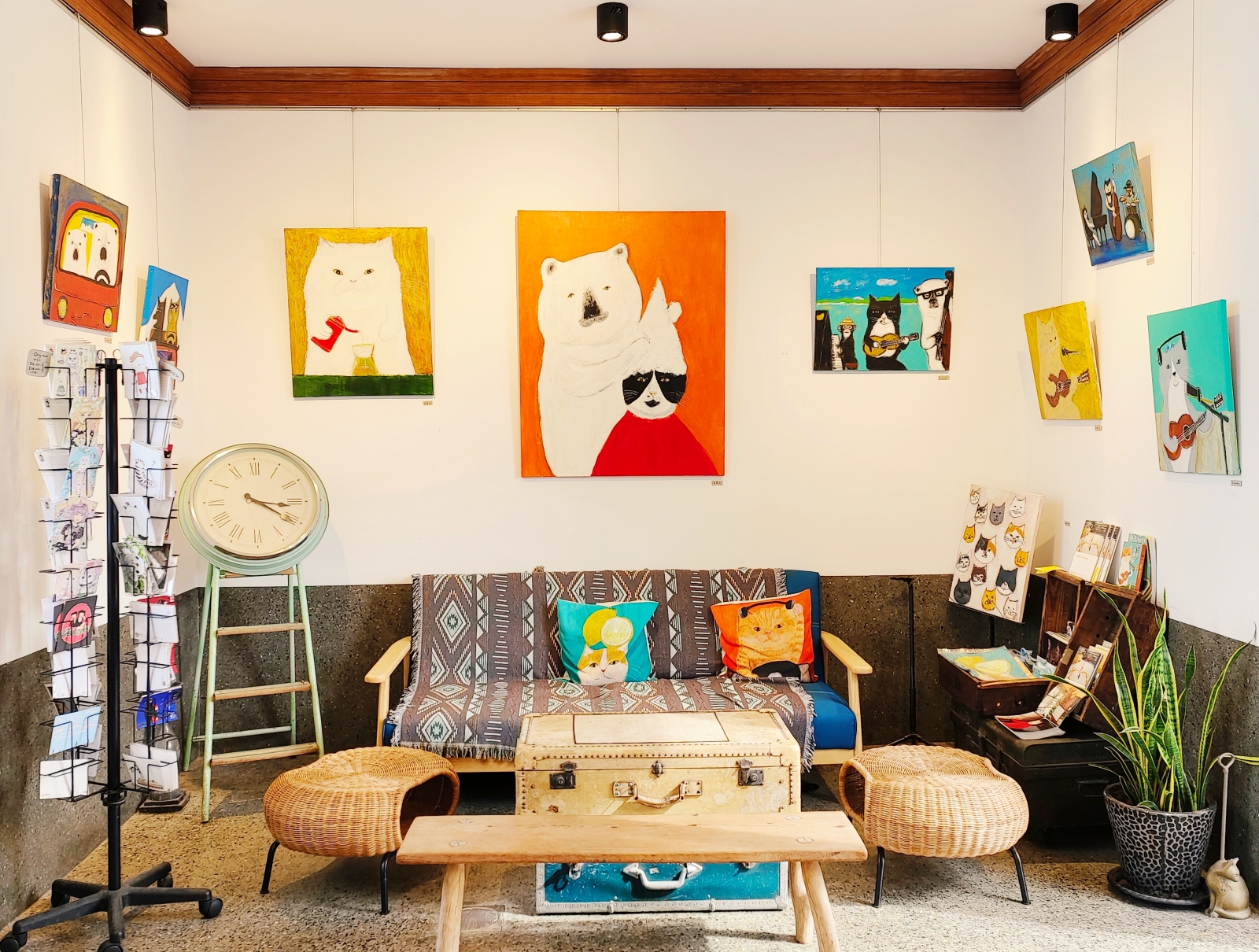 ▼店內掛有多幅貓、熊的畫作,童趣、溫馨,也有一點詼諧感。