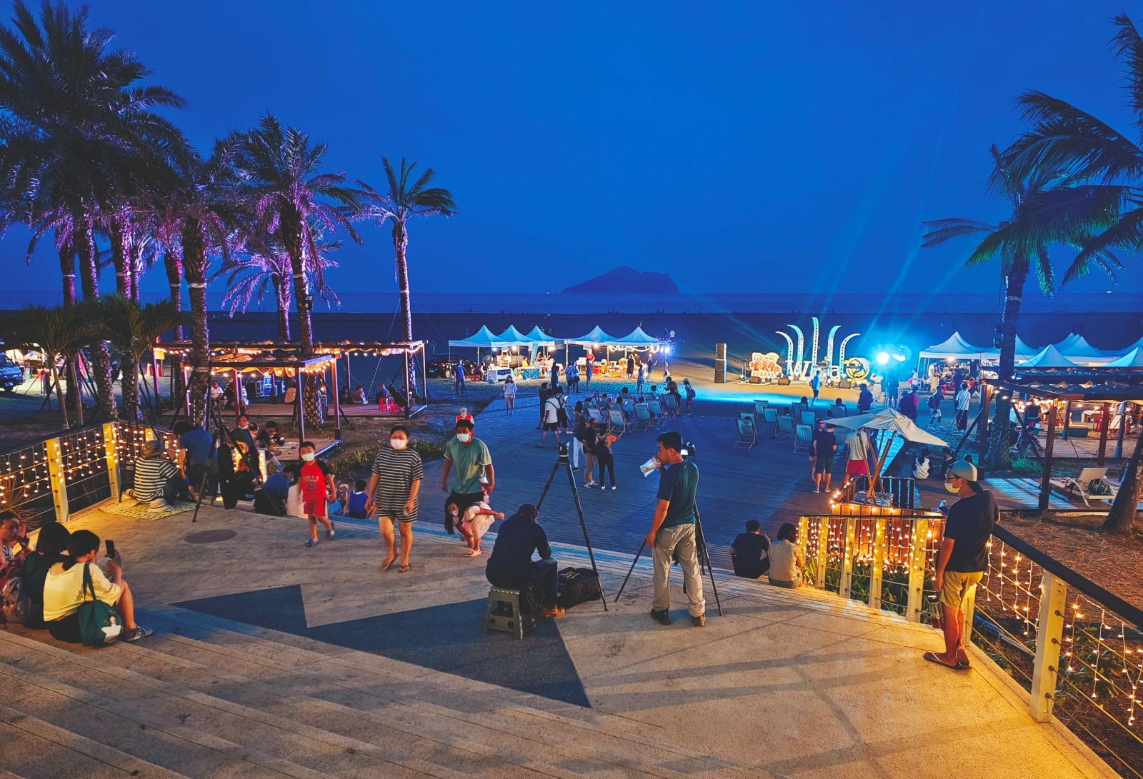 ▼來過頭城多次,第一次在夜晚吹著海風、逛市集、聽歌。市集以精彩表演節目串場,內容有鄒族女聲高蕾雅、以古風樂器詮釋多樣曲風的戰嬿舞團、演奏爵士樂的夏那樂團,即將成真火舞團演出。