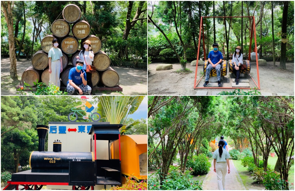 花梁鋼橋邊有這家「鐵道之鄉酒莊」,免費入園可以當作來后豐鐵馬道的休息站,裡面庭園綠意盎然且佈置了幾個拍照區域。館內能試吃農產品買買伴手禮,其中招牌的洋蔥葡萄酒、梅子酒、梅子酵素、蜂蜜酒等都是熱門產品。