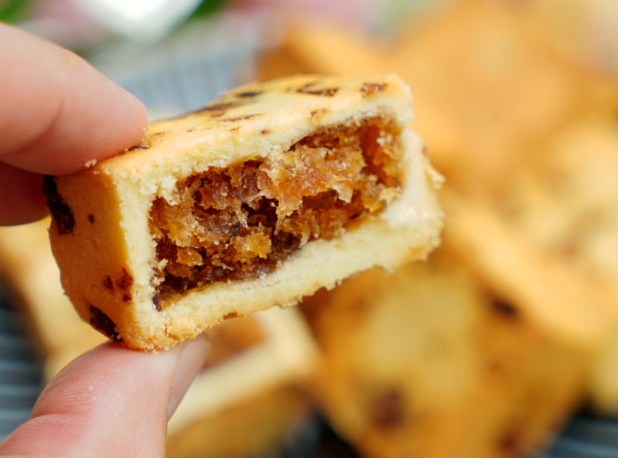 ▼內餡包裹著新鮮製成的鳳梨醬,不僅甘甜軟滑,還帶有鳳梨的纖維與顆粒口感,軟Q滑順又不會過於甜膩,搭配酥香鬆軟的餅皮著實銷魂啊!
