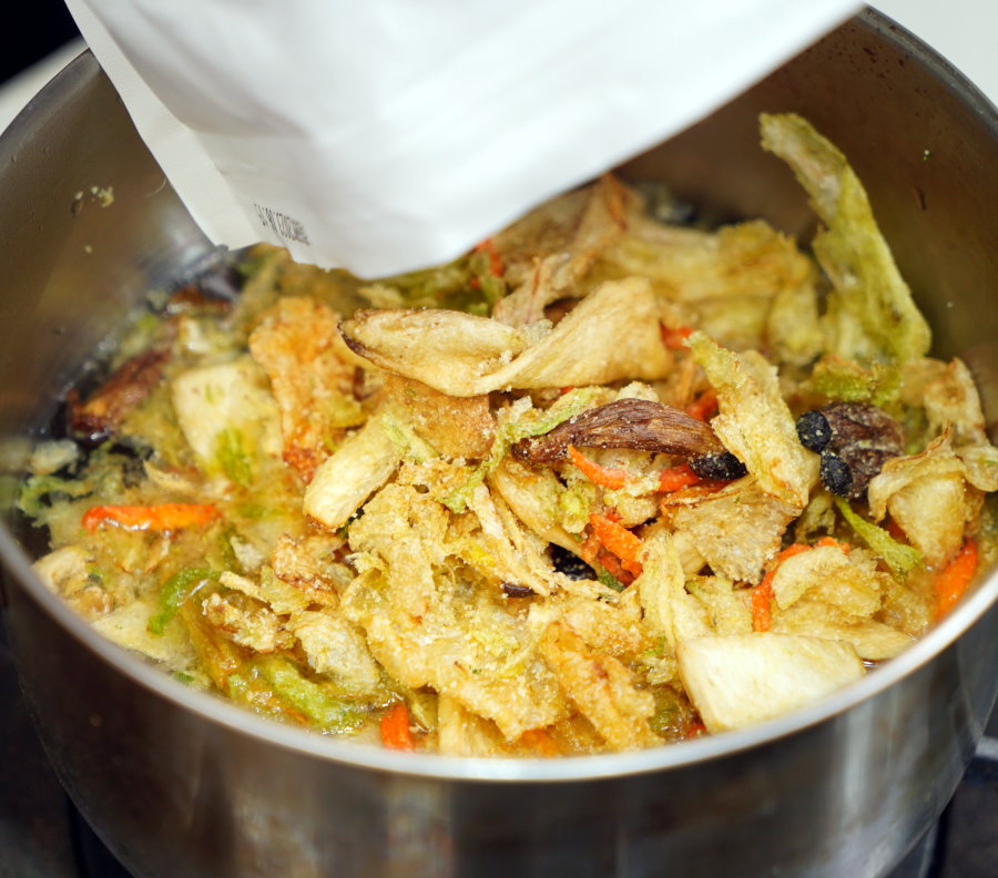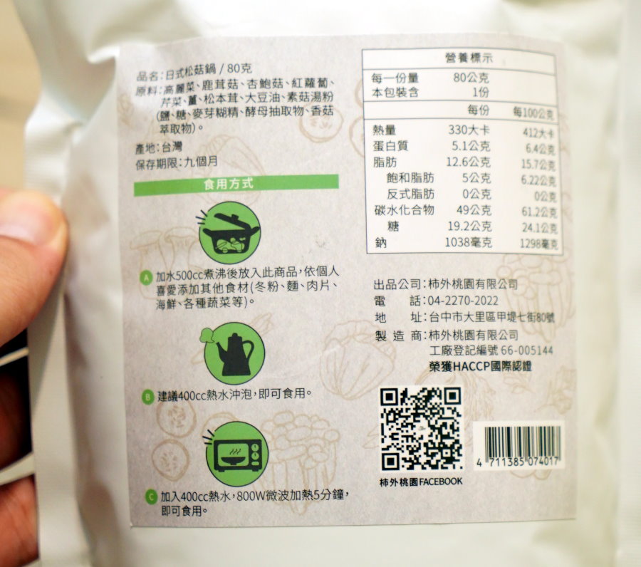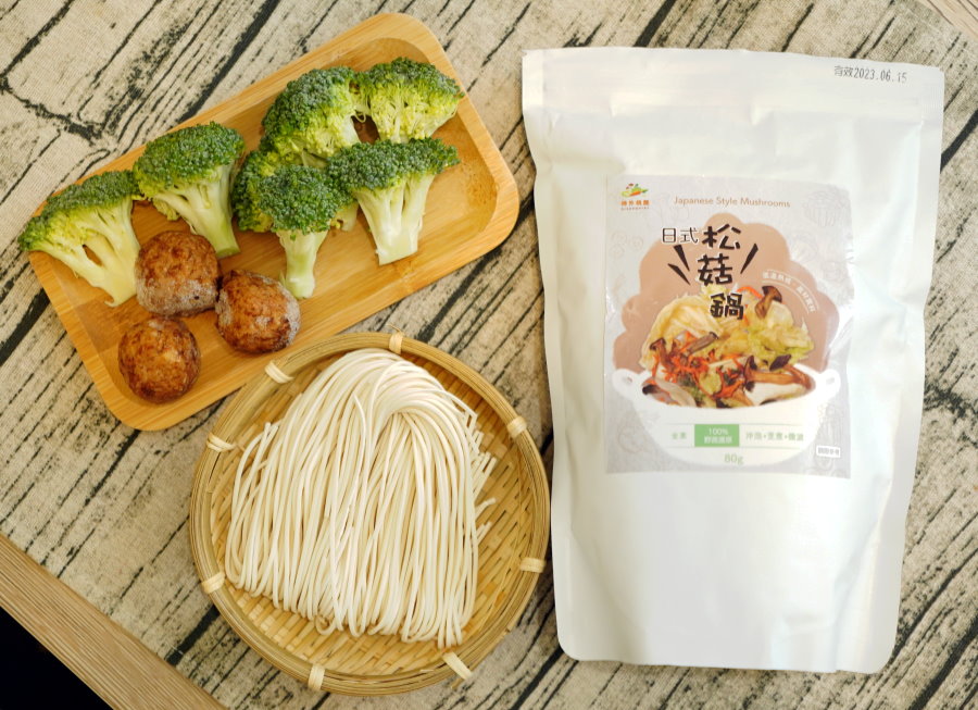 ▼這款由柿外桃園推出的「日式松菇鍋」也很特別,秉持珍愛食材不浪費的原則,特別選用大量國產蔬果製成營養美味的松菇火鍋,大家可以直接微波、水煮、沖泡食用,即時又方便,或是像我們一樣自行加料享用更豐盛!