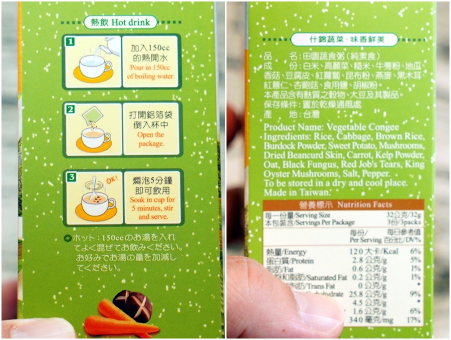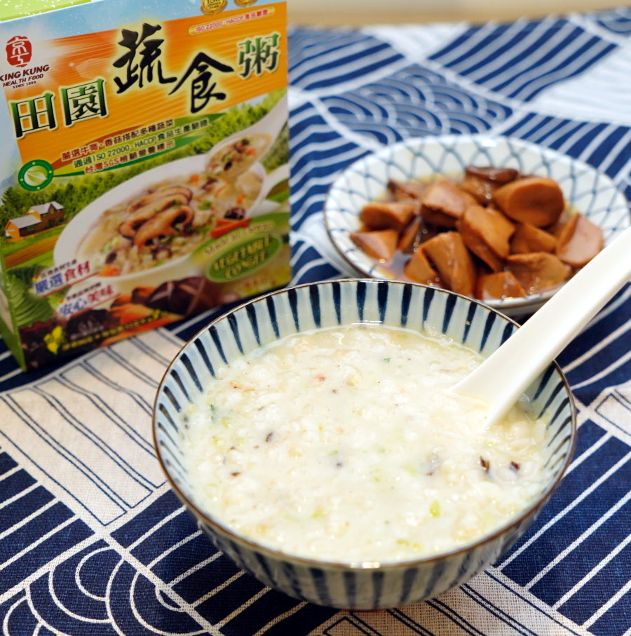 ▼由京工推出的「田園蔬食粥」採用多種在地蔬食、穀物下去製成,沒有添加色素及防腐劑,還有通過食品生產認證與SGS檢驗合格,純素食的朋友也可以安心享用!