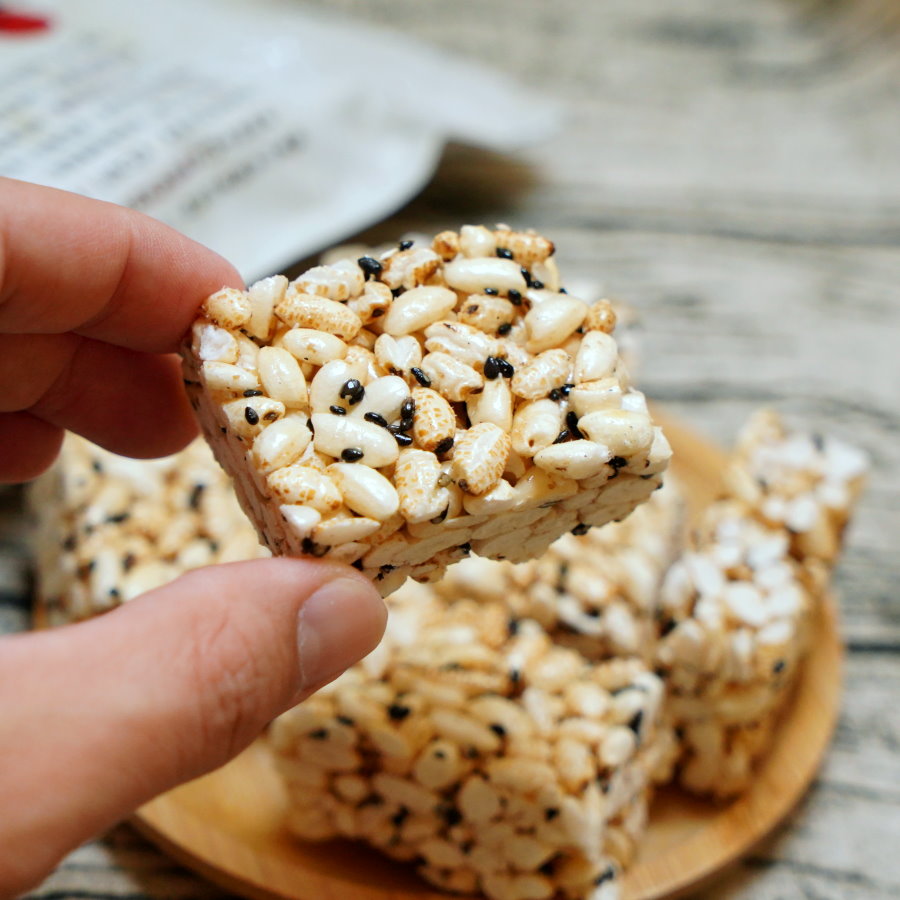 ▼大顆飽滿的米香搭配粒粒分明、香氣十足的黑芝麻,吃起來酥鬆脆口又帶有米香,加上麥芽糖、黑芝麻的迷人香氣,整個超級涮嘴~讓愛吃古早味的大口忍不住就吃了半包之多(笑)!