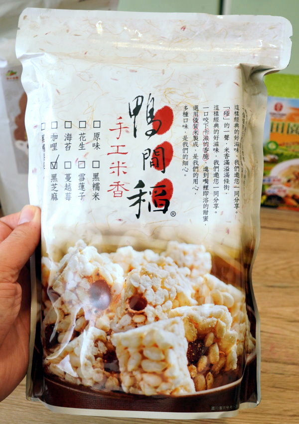 ▼由泉順食品推出的「鴨間稻黑芝麻米香」選用的是苗栗苑裡在地自然生態優質國產稻米,沒有添加人工添加物,搭配優質麥芽糖純手工製成,有種濃濃古早味的感覺!