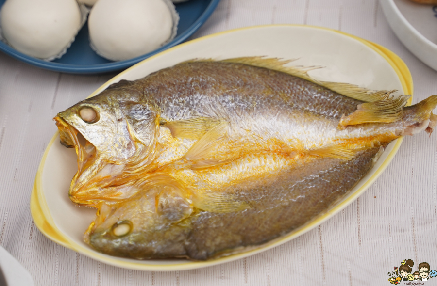 外皮帶有Q度,肉質細膩引出一夜陰乾的鹹香滋味,帶出大黃魚本身細緻口感與魚肉甜味