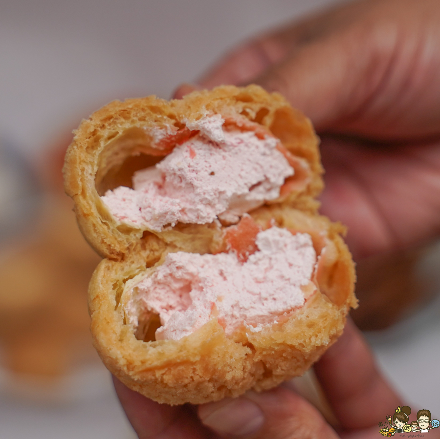 內餡很細緻滑口,帶有酸甜的草莓內餡滋潤,大人小孩都喜歡吃的泡芙甜點