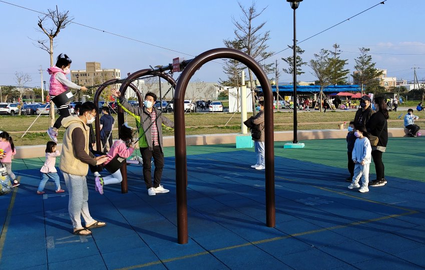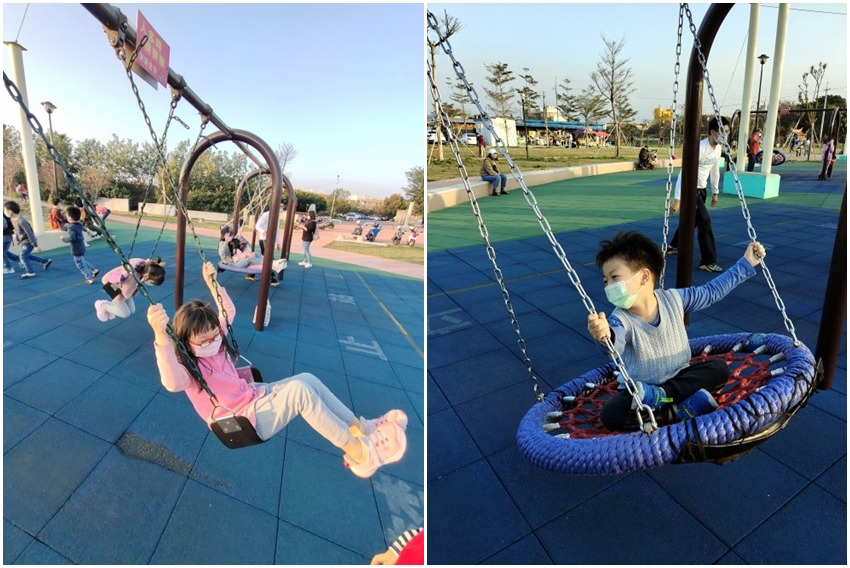 ▼盪鞦韆也是公園必備遊具,除了一般造型之外也有共融鳥巢盪鞦韆,包準小朋友玩得很開心!