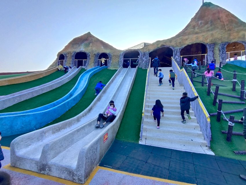 ▼火炎山地景溜滑梯根本就是小朋友的玩樂天堂,雖然有點高但小朋友來來回回跑上跑下一點都不嫌累,也是放電的好地方!