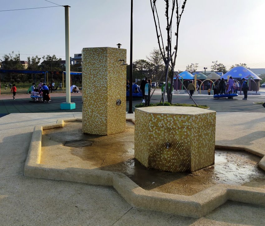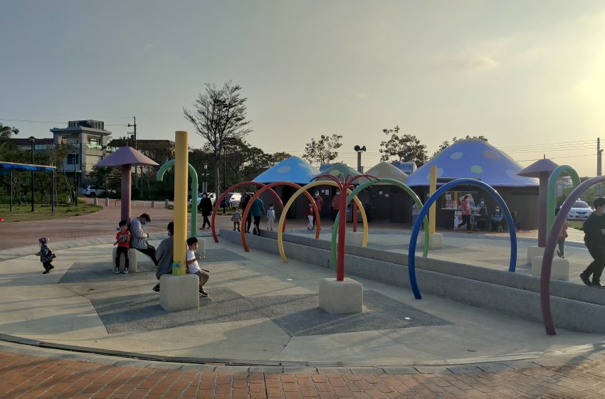 ▼戲水池,有彩虹拱門跟水柱式噴水設施,可惜疫情期間沒有開放,期待開放後夏天也可以來玩水玩個過癮!