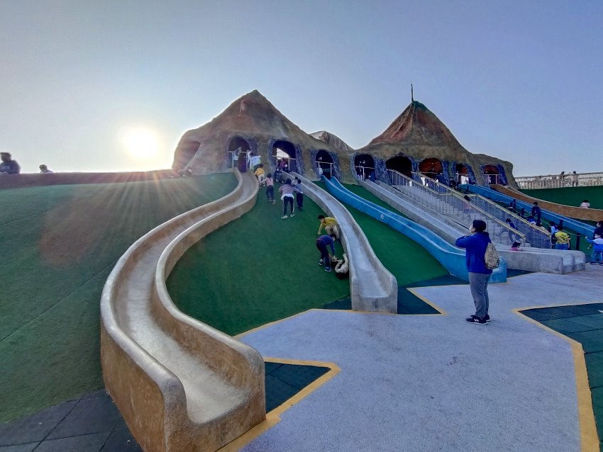 ▼小朋友看到這座火炎山地景溜滑梯眼睛都亮了~~迫不及待往上爬,然後再溜下來,來來回回可以玩個十幾趟沒問題(笑)!